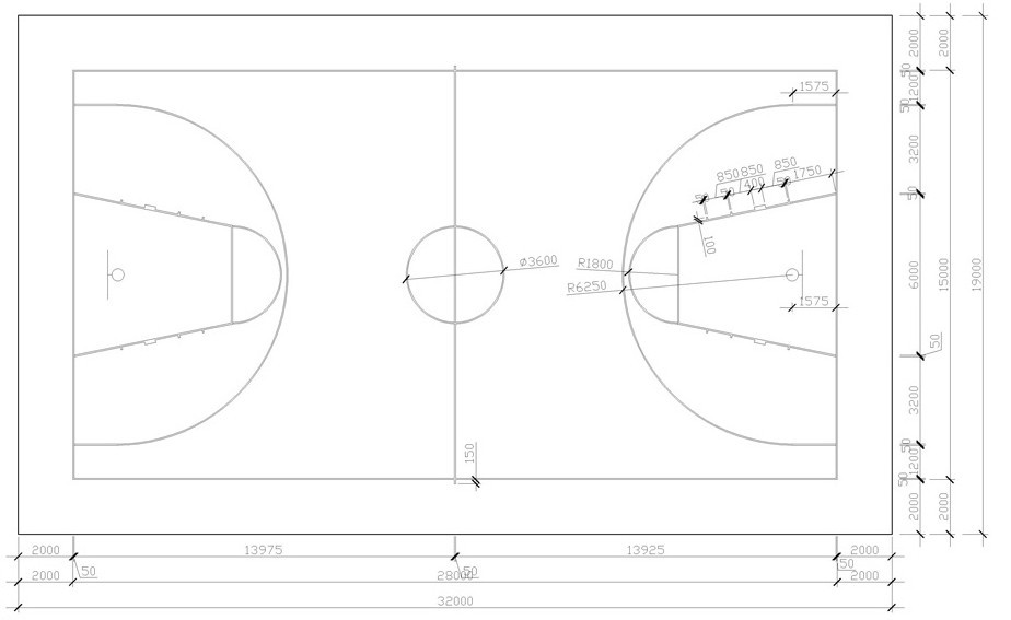 籃球場地標(biāo)準(zhǔn)尺寸圖